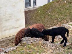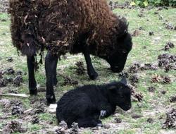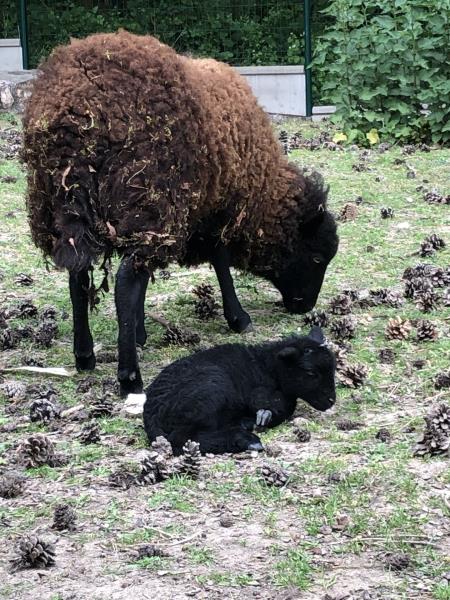 Notre couple de moutons d'Ouessant se porte très bien, ainsi que le petit, qui se promène déjà dans tout le parc !
