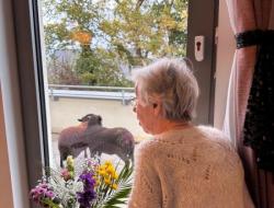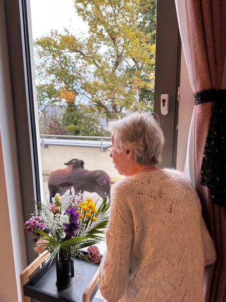 Mme David a eu la surprise de voir passer sur la terrasse du rez-de-jardin les deux moutons de la résidence. C'est surprenant car les moutons vivent au parc au rez-de-chaussée, soit un étage en dessous !